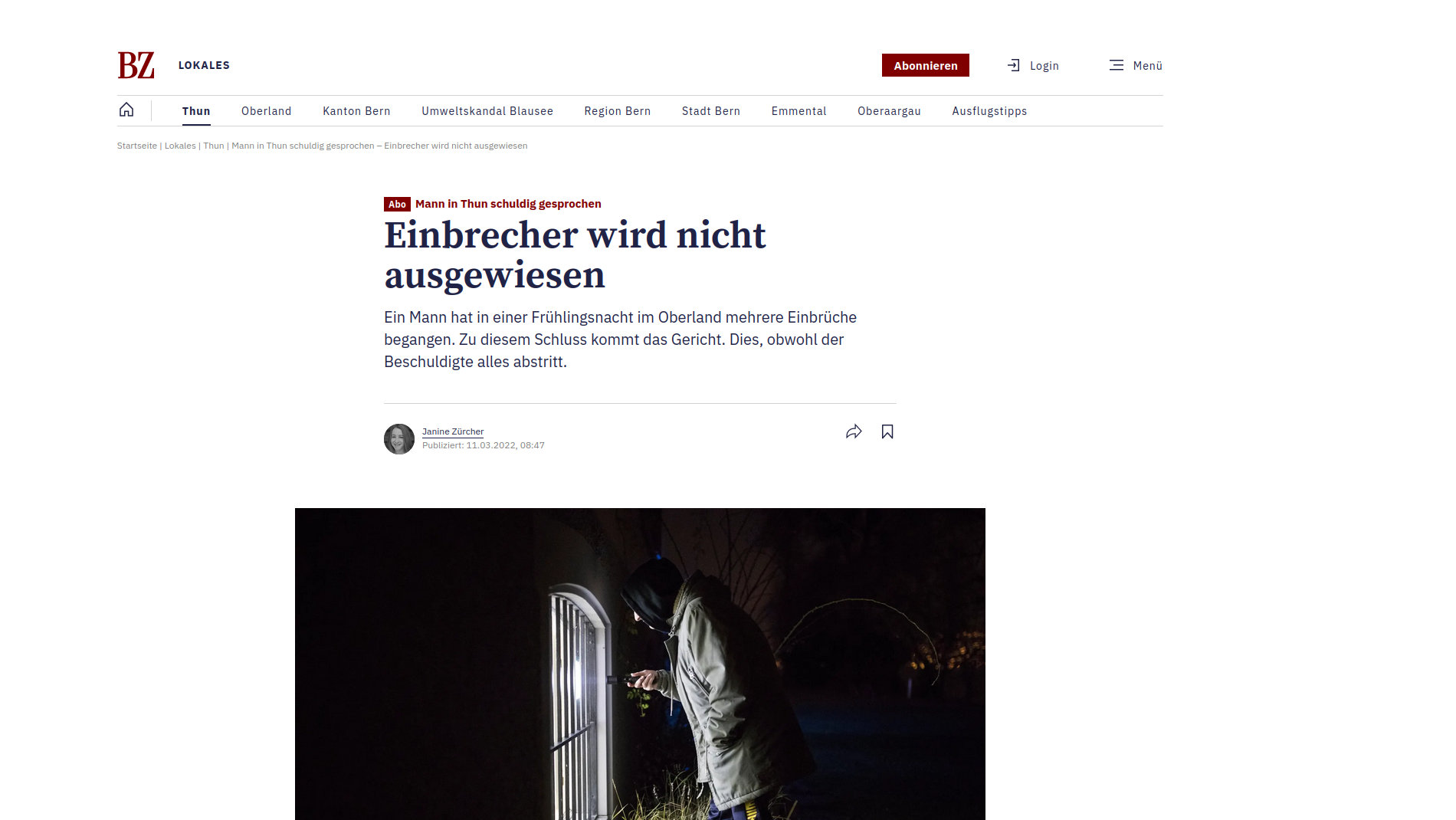 Ein Mann hat in einer Frühlingsnacht im Oberland mehrere Einbrüche begangen. Zu diesem Schluss kommt das Gericht. Dies, obwohl der Beschuldigte alles abstritt. War es der 37-Jährige, der im Frühling 2019 in einer Nacht mit zwei Mittätern in mehrere Geschäfte im Berner Oberland eingebrochen ist? Die Täter beschädigten dort Türen und Fenster, um in die Gebäude zu gelangen, durchsuchten die Räume nach Geld und verwüsteten ein Büro. Sie erbeuteten nur kleinere Mengen Bargeld – verursachten jedoch grosse Sachschäden. So hebelten sie einen Tresor aus der Verankerung und luden diesen auf eine Schubkarre, um ihn abzutransportieren. Dazu kam es allerdings nicht mehr.